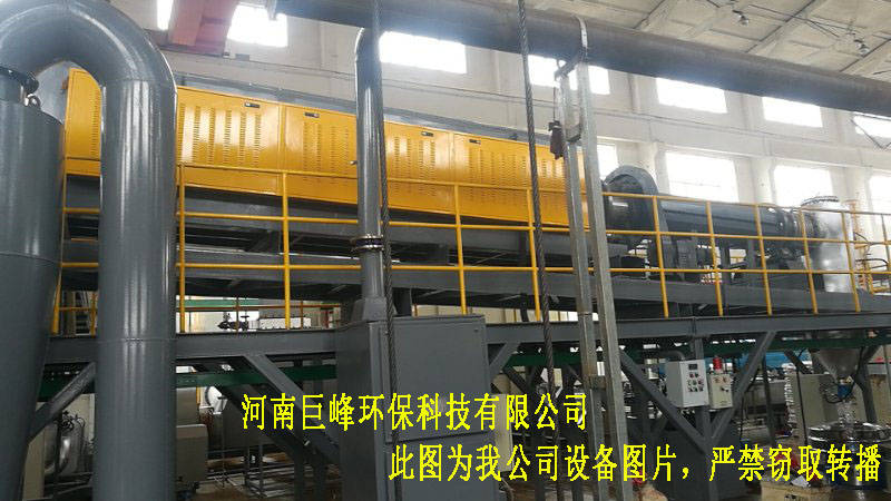 無氧裂解系統(tǒng)性中產(chǎn)生的可燃?xì)馀c破碎分選產(chǎn)生的廢氣進(jìn)行互補(bǔ),在燃燒室中充分燃燒,達(dá)到廢氣相互燃燒和充分利用,使燃燒后的尾氣處理比較簡(jiǎn)單。